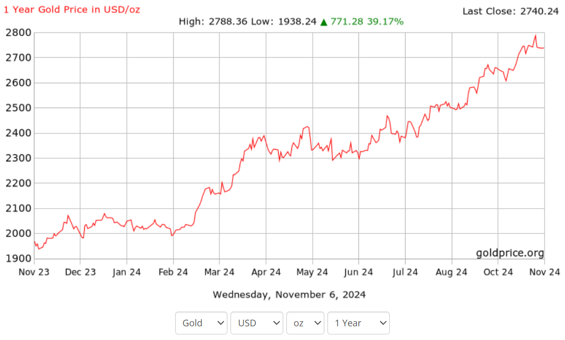 Setelah periode konsolidasi dua bulan pada bulan Mei dan Juni, Emas kembali menguat pada bulan Juli dan memasuki tren naik selama empat bulan. Dari Juli hingga November, Emas naik lebih dari 15% dan menyentuh rekor tertinggi baru mendekati $2.800 pada hari perdagangan terakhir bulan Oktober.