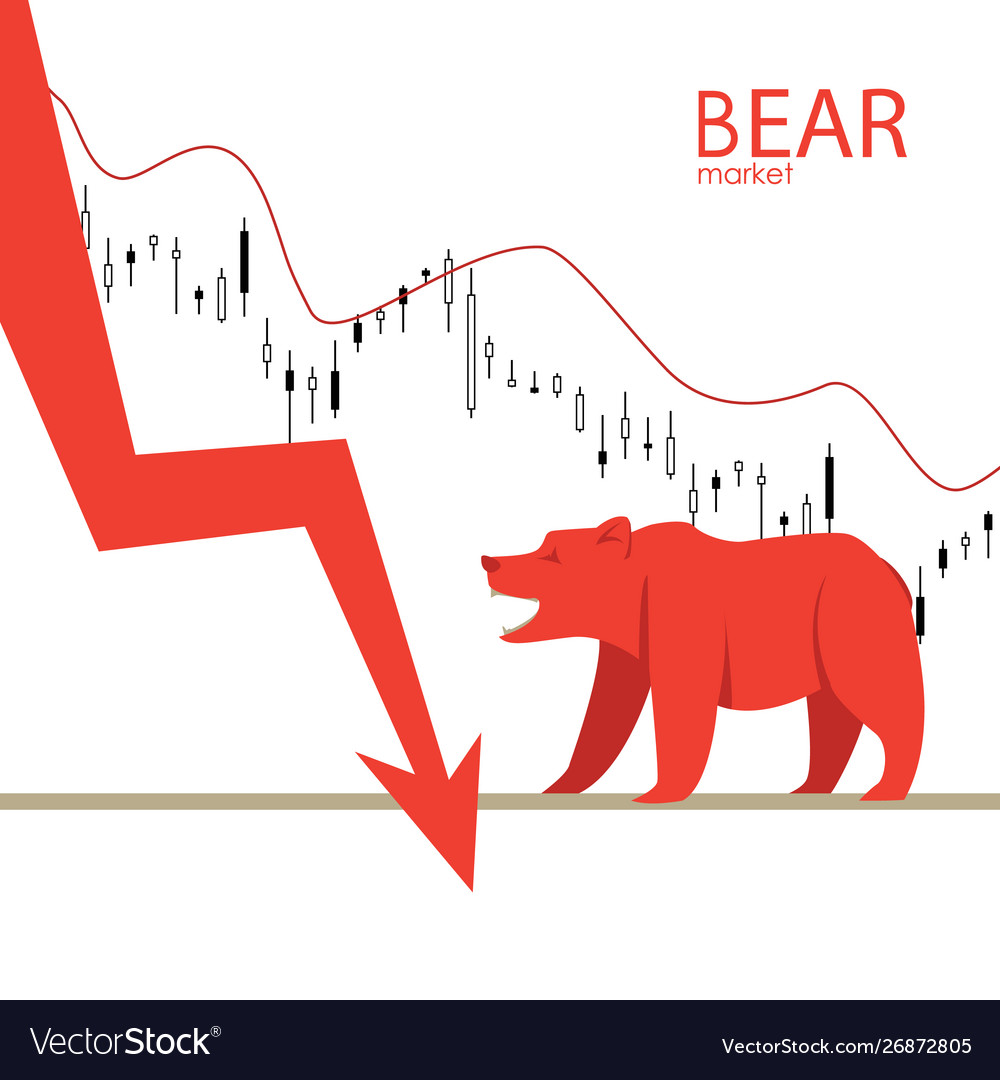 Bear market. Bear and red arrow. The chart and the indicator show a downward trend. Stock market vector illustration.